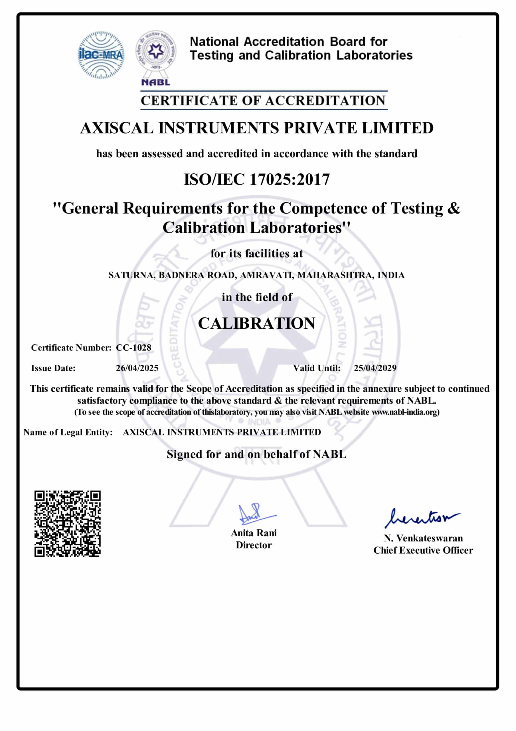 Our Calibration scope consists of Mechanical | Thermal Volumetric | Mass | Pressure | Electrotechnical| All hardness, UTM, CTM | Dimension | Sieves etc.